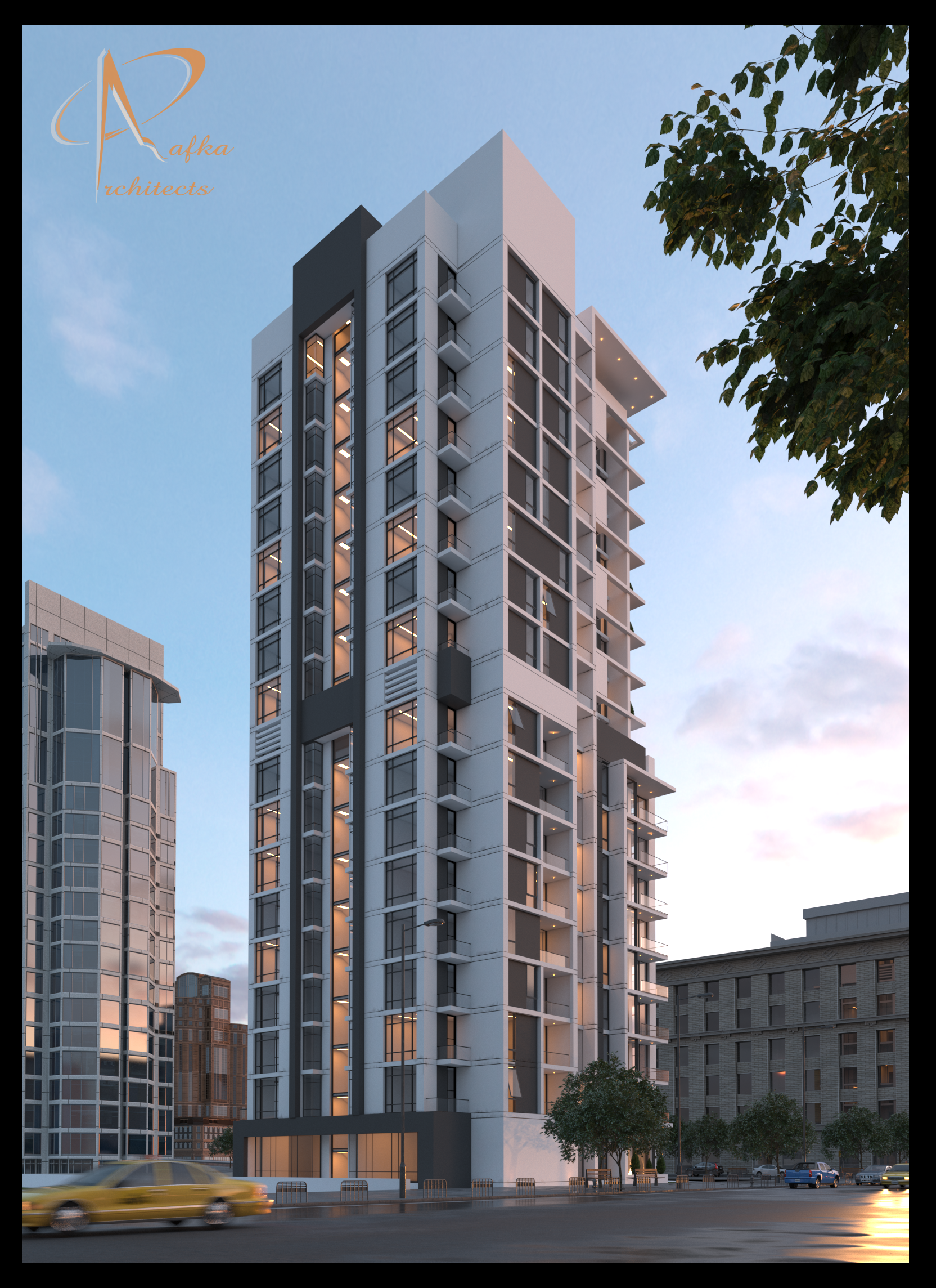,حيث اعتمدت الفكرة التصميمية على بساطة حل الواجهات وعلى تركيز التفريغ في الكتلة العلوية مراعاة للحل الوظيفي و الحصول على الرشاقة المطلوبة